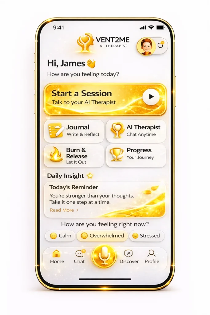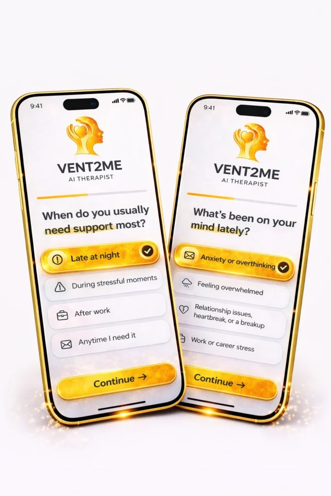Vent2Me gives you the comfort, stability, and support of someone who truly listens — without the pressure or cost of traditional therapy.